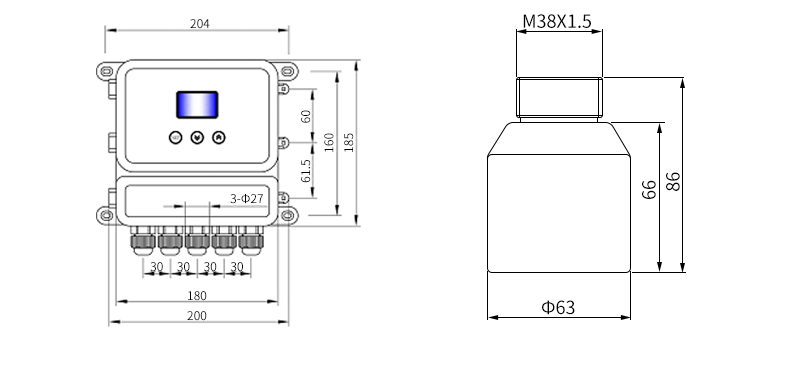 MIK-DFG分體式超聲液位/物位計是測量一個超聲波脈沖從發(fā)出到返回整個過程所需的時間。超聲波液位計垂直安裝在液體的表面,它向液面發(fā)出一個超聲波脈沖,經過一段時間,超聲波液位計的傳感器接收到從液面反射回的信號,信號經過變送器電路的選擇和處理,根據(jù)超聲波液位計發(fā)出和接收超聲波的時間差,計算出液面到傳感器的距離。分體式超聲波液位計廣泛用于罐體、水池、水庫的液位和體積測量,也可用于明渠的流量測量。