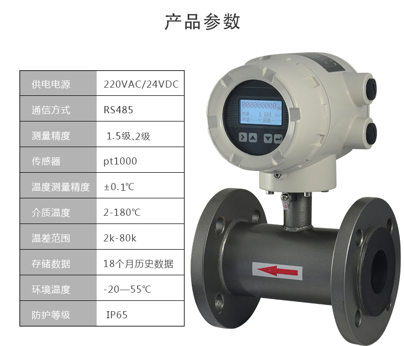 適用場合:超聲波熱量表是通過超聲波的方法測量流量及顯示水流經熱交換系統所釋放或吸收熱能量的儀表。它通過兩種傳感器測得的物理量——熱載體的流量和進出口的溫度,再經過密度和熱焓值的補償及積分計算,才能得到熱量值。