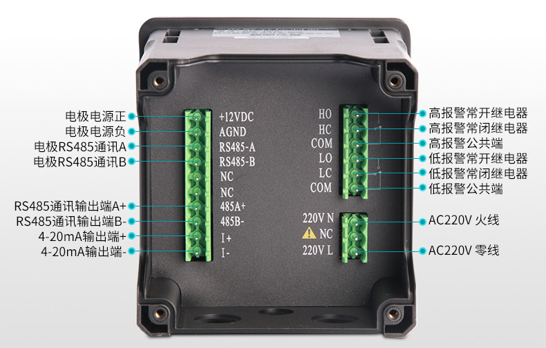 連續監測數據通過變送輸出連接記錄儀實現遠傳監控與記錄,也可以連接RS485接口通過MODBUS-RTU協議可方便聯入計算機實現監控與記錄。