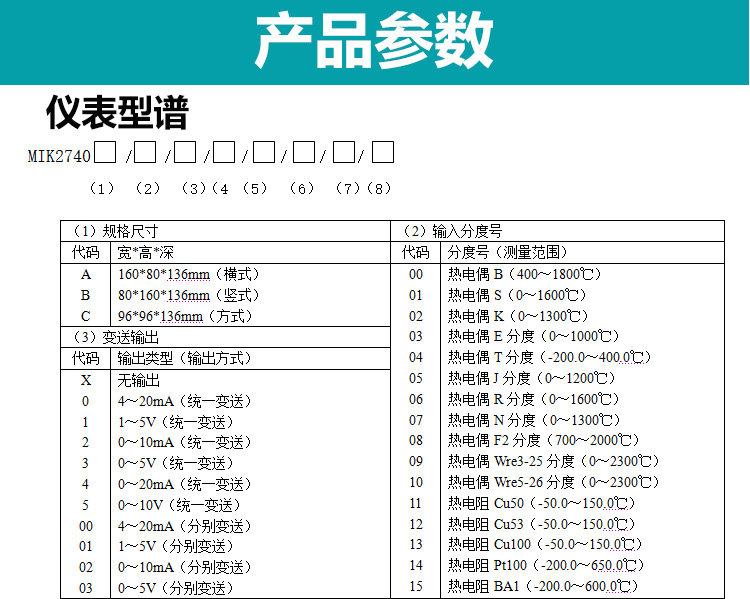 適用場合:MIK-1100系列單回路數(shù)字顯示控制儀,可支持熱電偶、熱電阻、電壓(可開方運算)、電流(可開方運算)及變送器輸入,適用溫度、壓力、流量、液位、濕度等工業(yè)過程量的監(jiān)測。